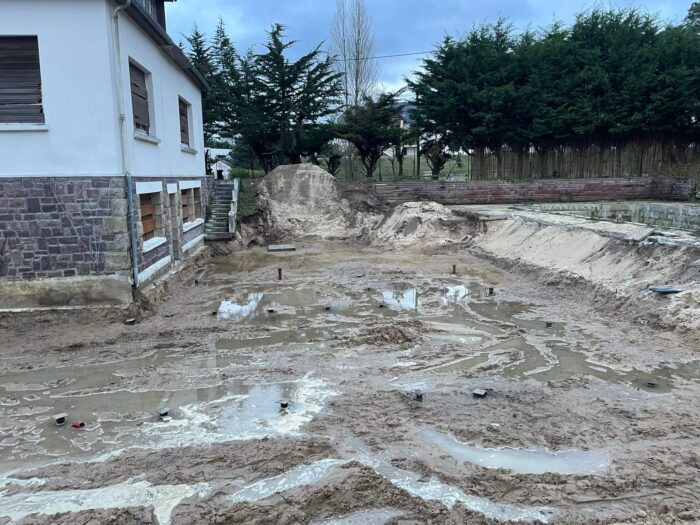 Extension de 2 niveaux d’une maison, infrastructure béton armé/poutrelle hourdis, structure métal/bois, restructuration lourde de l’intérieur (ouverture de mur porteur et trémie).